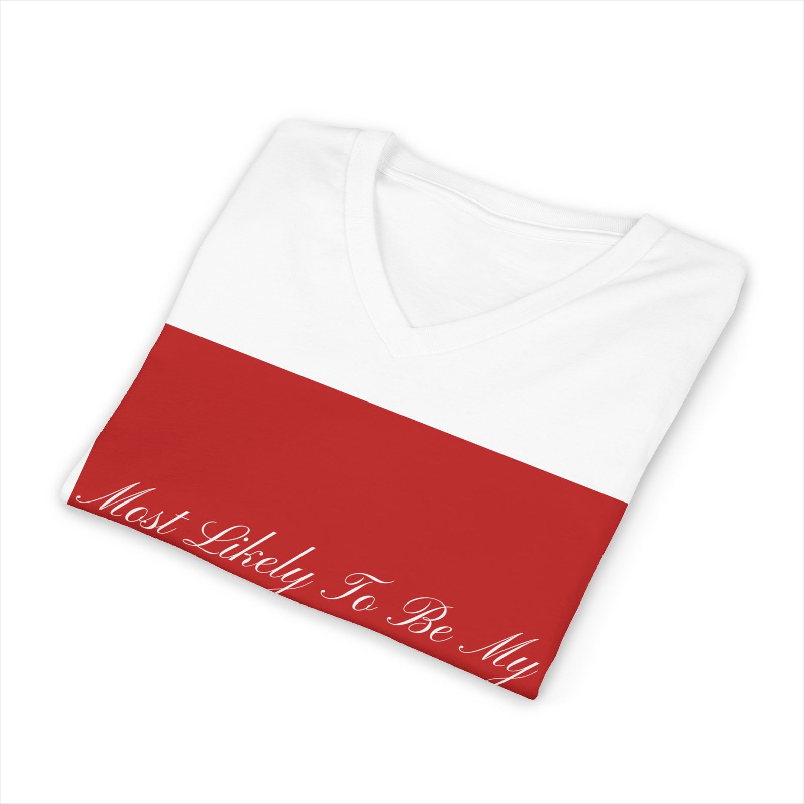 V-Neck Tee — MOST LIKELY TO BE MY FOREVER VALENTINE.