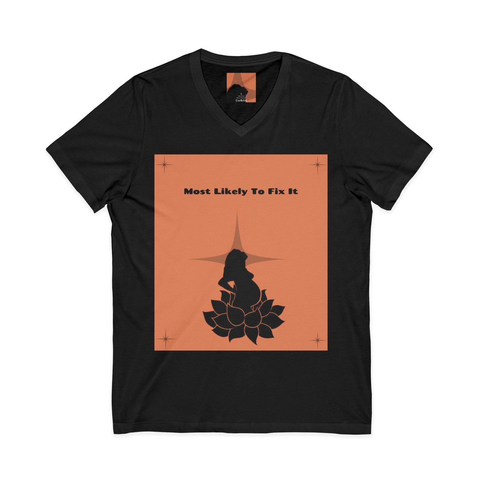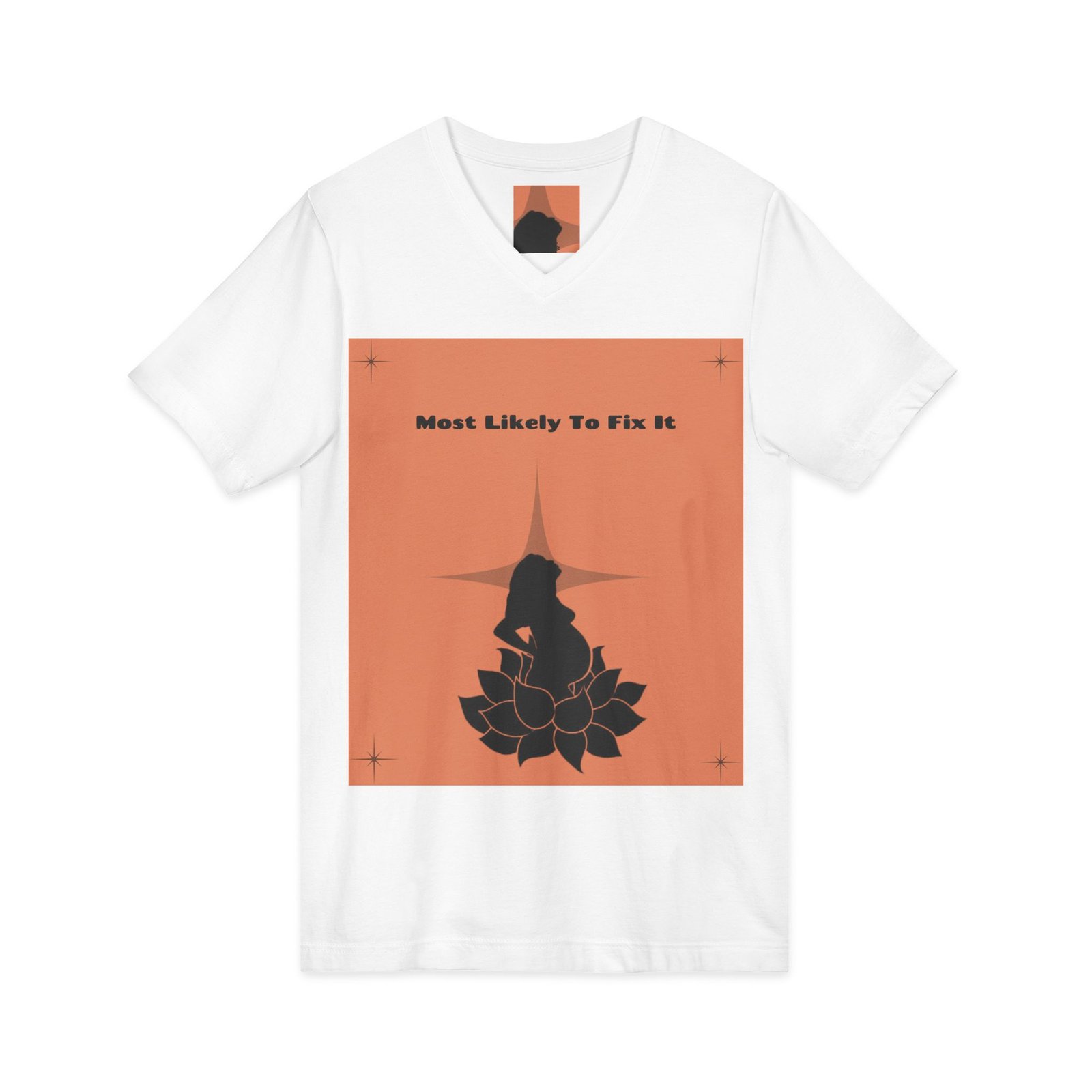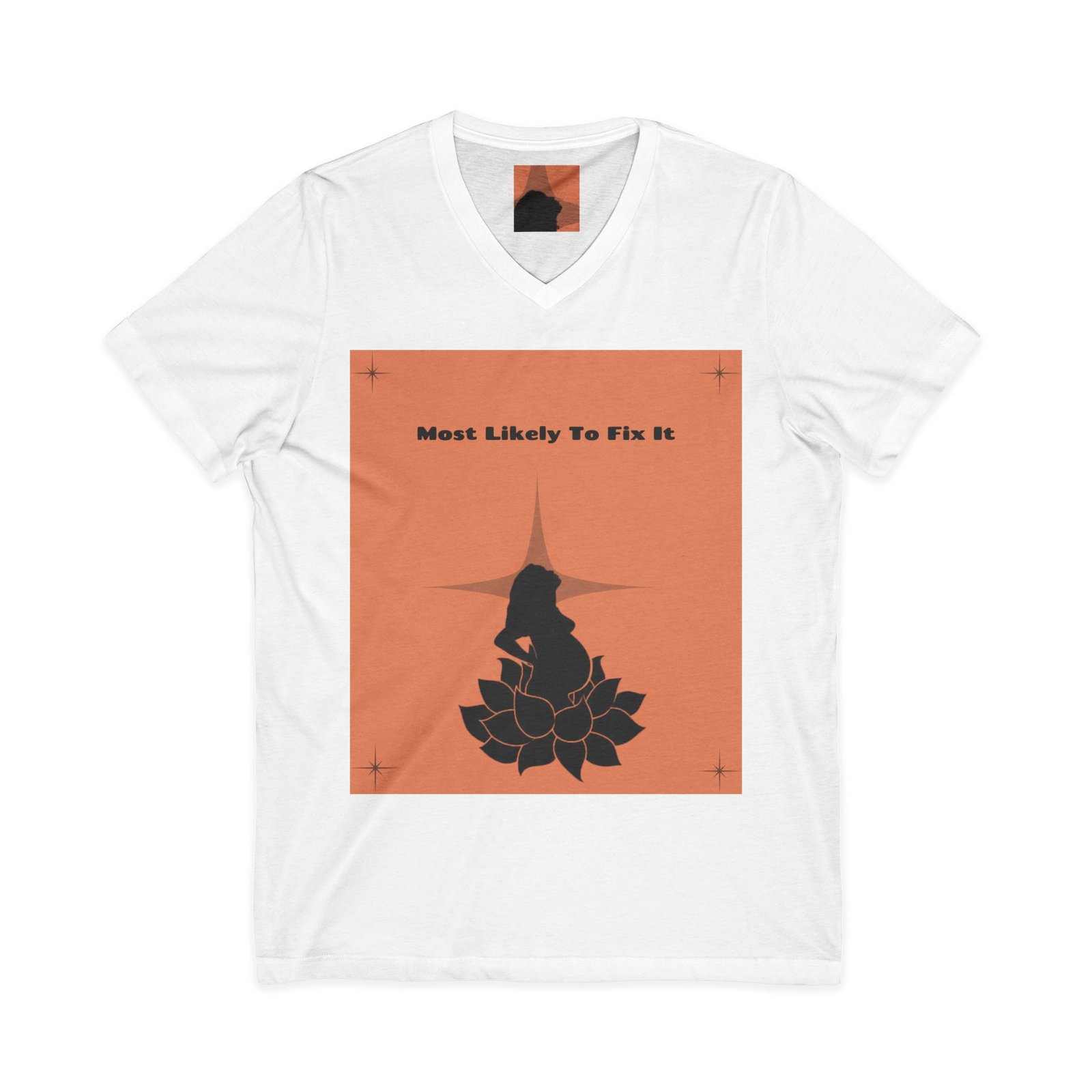 This lightweight V-neck tee blends lived-in comfort with quiet confidence. A warm, terracotta square frames a meditative silhouette seated atop layered petals — a graphic that reads like a personal emblem for makers, fixers, and steady hands. The retail V-neck and clean side seams keep the shirt draping neatly whether you’re sketching plans, tinkering in the garage, or sitting for a slow afternoon of tea. Subtle yet striking, the print feels like a badge: calm, capable, and exactly the kind of everyday piece you reach for when you want to move through the day with purpose.